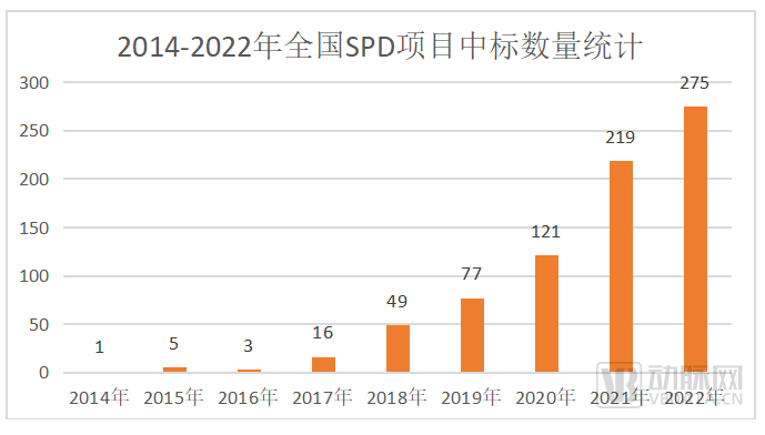 2014-2022年全國SPD項目中標(biāo)數(shù)量情況,數(shù)據(jù)來源:眾成醫(yī)械