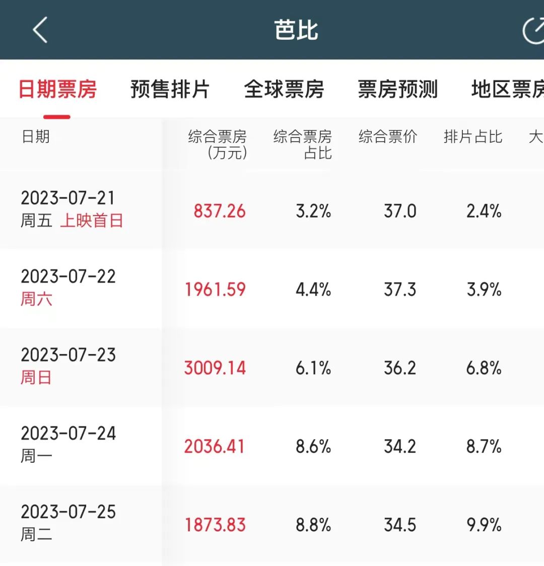 于上周五內(nèi)地首映的《芭比》,在首日排片僅有2.4%、首日票房僅837.26萬的超不利開局下,依靠影片超高品質(zhì)和超高話題度引起觀眾巨大反響,接連實現(xiàn)排片、票房的雙雙逆跌。