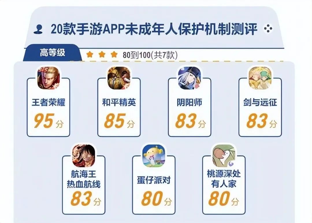 在具體的措施上,各公司游戲產(chǎn)品也采取了更為積極和主動(dòng)的防沉迷策略,使得游戲行業(yè)的未成年人保護(hù)水平有了切實(shí)提高。今年,南財(cái)數(shù)字娛樂(lè)課題組推出《20款手游未成年人保護(hù)機(jī)制測(cè)評(píng)(2023)》,從受測(cè)手游防沉迷機(jī)制的“游玩前”“游玩中”及“游玩后”三個(gè)環(huán)節(jié)進(jìn)行打分,受測(cè)手游的測(cè)分結(jié)果平均值是75.6分,相較2022年升高4.27分。其中,《王者榮耀》和《和平精英》以95分和85分位列前兩名。