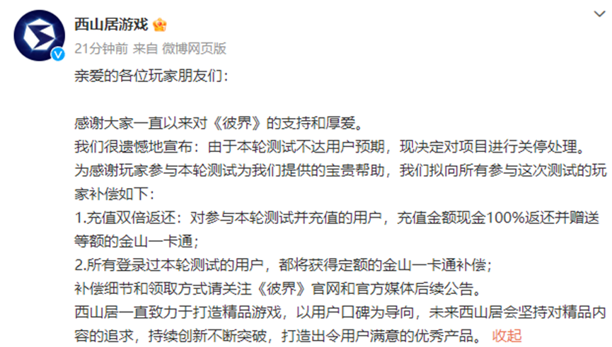 然而,在這一年多的時(shí)間里,二次元手游的生存壓力明顯增加,面臨玩家需求、游戲質(zhì)量標(biāo)準(zhǔn)有所提高以及僧多粥少的情況,《塵白禁區(qū)》的生存空間進(jìn)一步縮窄。《星穹鐵道》的黑暗降臨也對(duì)二游市場(chǎng)進(jìn)行了沖擊,同為回合制游戲的《彼界》就因不達(dá)預(yù)期被砍。《雙生視界》也在去年6月停止更新,如今西山居能拿出來(lái)的二次元手牌似乎只剩這一張。