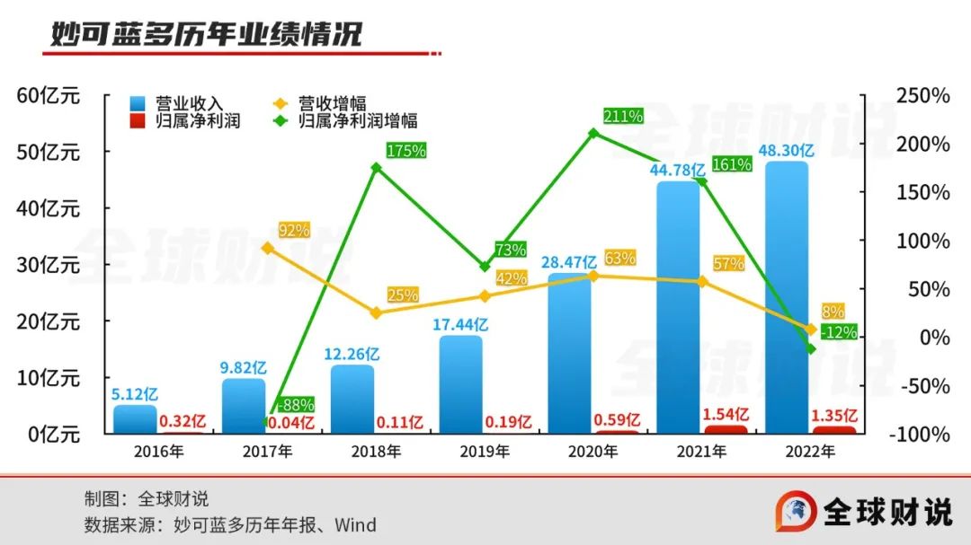即便有理財(cái)助力,2022年妙可藍(lán)多歸屬凈利潤(rùn)依舊以負(fù)增長(zhǎng)告終,同比下降12.32%至1.35億元,扣非凈利潤(rùn)同比下滑45.14%至6692.39億元,這亦是近5年首次出現(xiàn)凈利潤(rùn)負(fù)增長(zhǎng)。