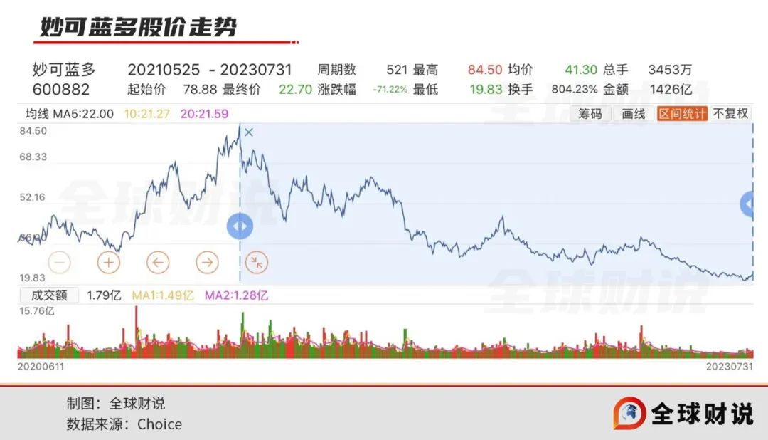 對(duì)于蒙牛的“傾力相助”,外界持保留態(tài)度,畢竟從財(cái)務(wù)上看蒙牛對(duì)于妙可藍(lán)多這筆投資,似乎已經(jīng)開始賠本了。結(jié)合此前蒙牛對(duì)妙可藍(lán)多的增資價(jià)格來看,都是在30元/股左右的價(jià)格。截至7月31日,妙可藍(lán)多報(bào)收22.70元/股,較2021年的歷史高位下滑超7成。
