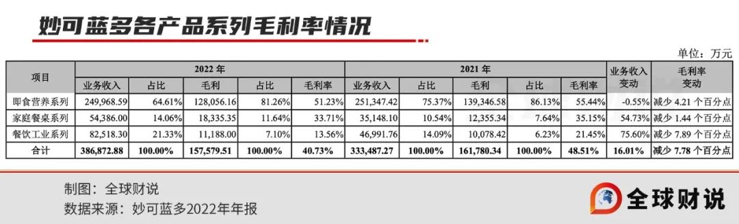 根據(jù)營(yíng)收結(jié)構(gòu)來看,雖家庭場(chǎng)景及餐飲場(chǎng)景營(yíng)收占比正逐漸升高,但相較于即食營(yíng)養(yǎng)產(chǎn)品超50%的毛利率,其他兩業(yè)務(wù)板塊毛利率較低,對(duì)公司整體盈利幫助有限。