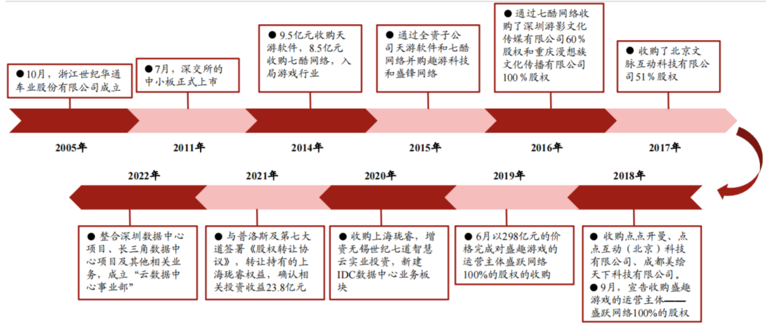 轉折來到了2014年,彼時世紀華通汽車零部件制造業(yè)務承壓,正式開啟了轉型之路,依靠一系列并購先后將天游軟件、七酷網絡、點點互動、盛趣游戲等游戲公司收入囊中,覆蓋了從研發(fā)到發(fā)行的互聯網游戲產業(yè)布局,實現跨界轉型。