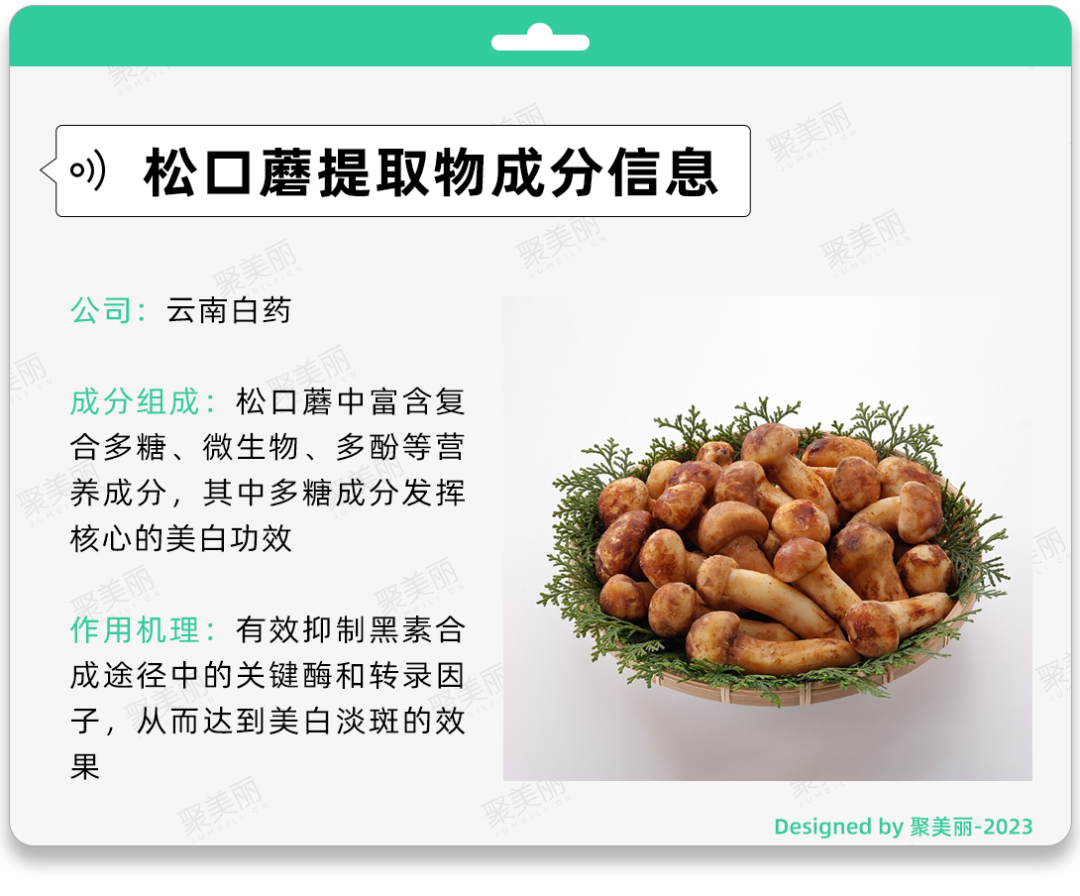 此外,在今年的PCT大會上,云南白藥為了研究更加精準、高效的美白天然原料,推出了一項關于松口蘑提取物美白功效的最新研究。