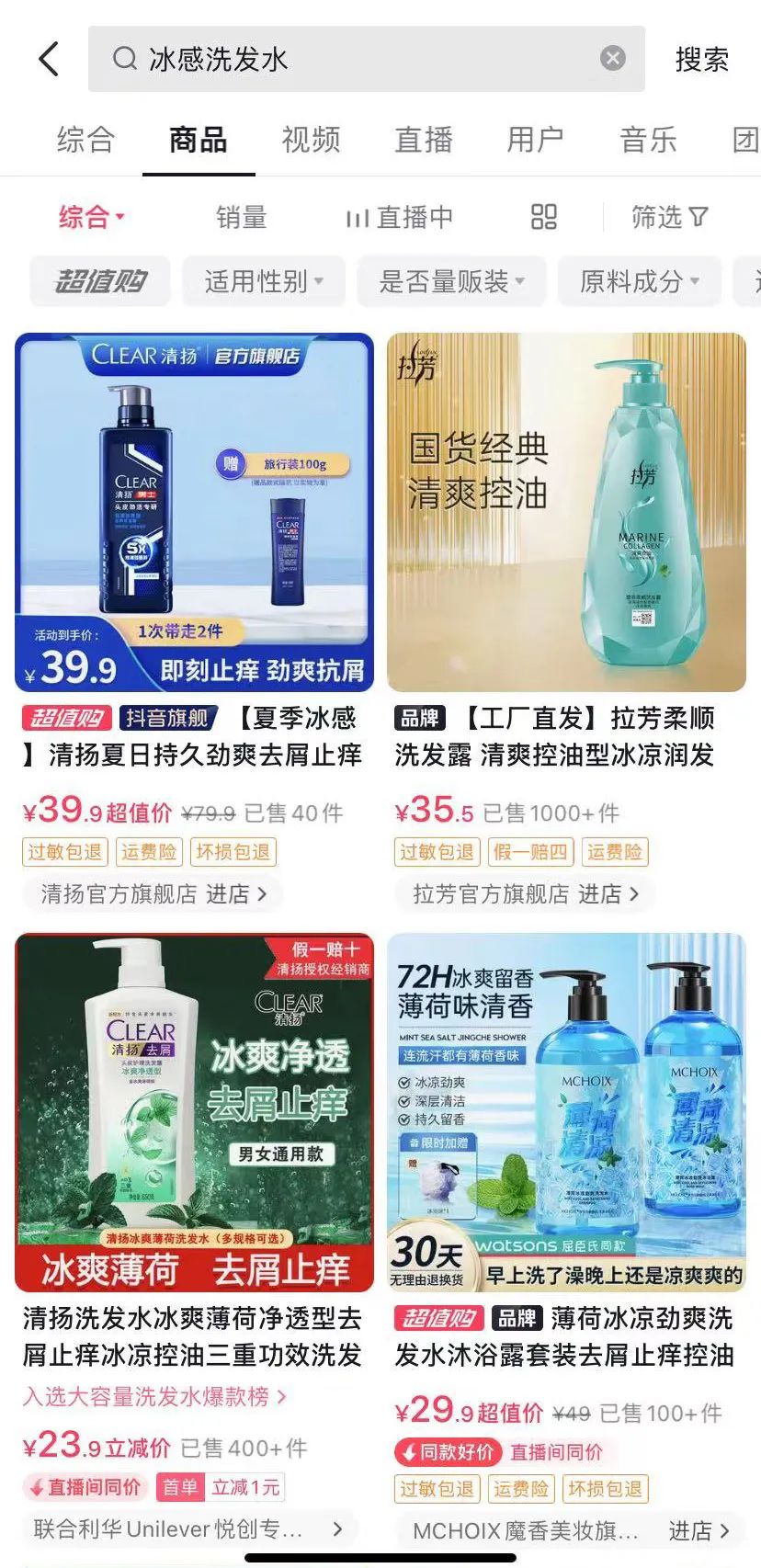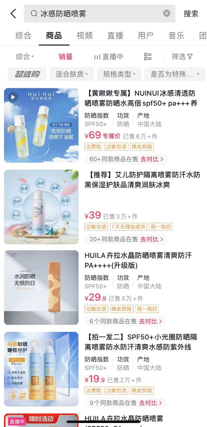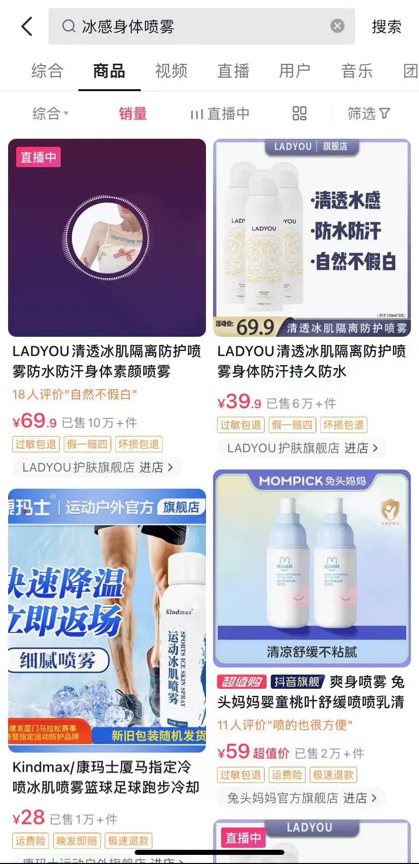 抖音平臺(tái)“冰感”相關(guān)護(hù)膚產(chǎn)品