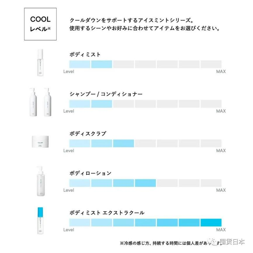 冰薄荷冷感系列自帶6種不同程度的涼感梯度,可供消費(fèi)者在戶(hù)外、室內(nèi)等不同場(chǎng)景使用自行選擇。
