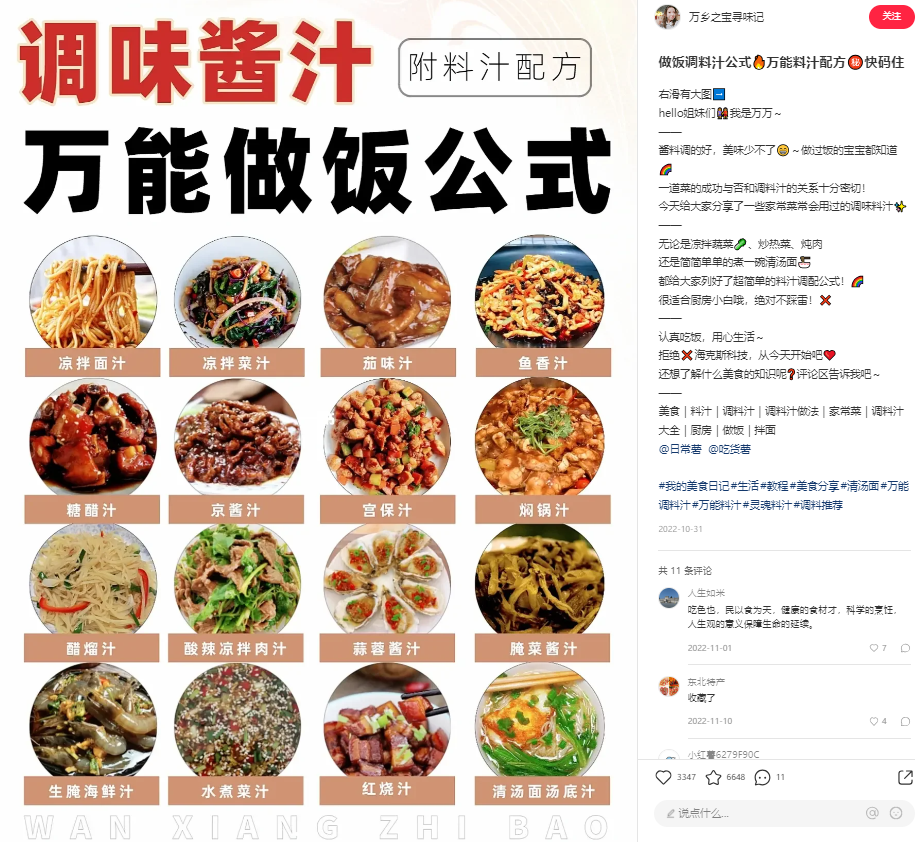 調(diào)味品口味的靈感可以從社交媒體的UGC中發(fā)現(xiàn)。比如在小紅書中有不少調(diào)味醬汁、萬(wàn)能調(diào)料的總結(jié),以及消費(fèi)者結(jié)合自己的做飯經(jīng)驗(yàn)“二創(chuàng)”調(diào)味品的用法。