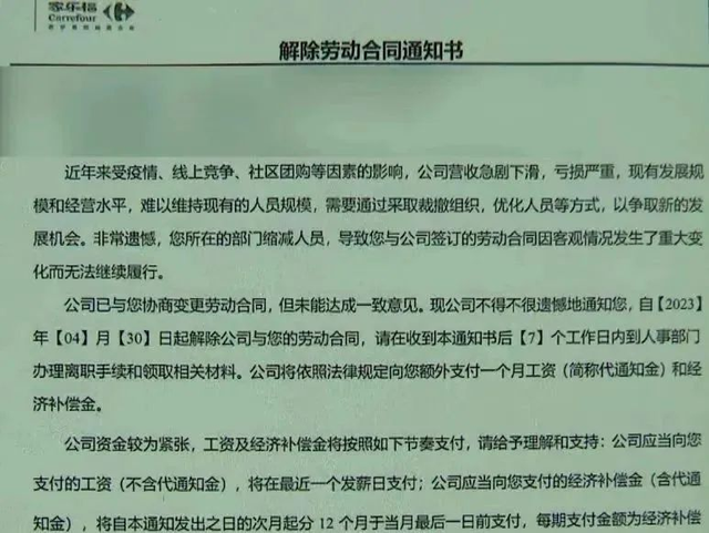 對此,北京家樂福相關負責人稱,公司經營性現金流回籠未達到預期,使得部分離職員工補償金暫時未能按時、足額到位,家樂福已經做好了員工的溝通工作。目前,企業(yè)正在積極轉型發(fā)展改善經營,并盡最大努力籌措資金保障離職員工補償金盡快進行支付。