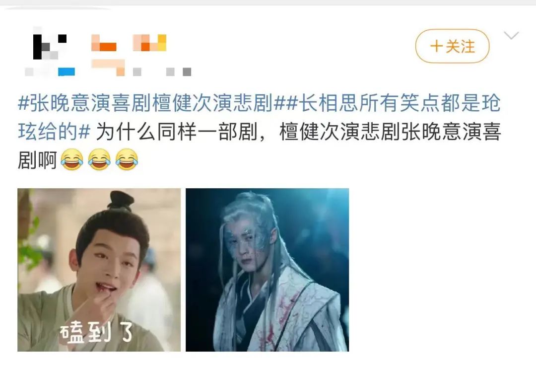 例如,微博上,《長相思》的“夭玹”CP粉熱衷于在情節(jié)中挖掘笑點,在廣場上各種玩梗造梗,“玱玹你怎么不笑了”、“玱玹被自己射出的子彈正中眉心”、“張晚意戴墨鏡cue玱玹瞎”等話題保持千萬閱讀量,而這些看似戲謔的話題詞,其本身就已經(jīng)有了一些再創(chuàng)作的味道。