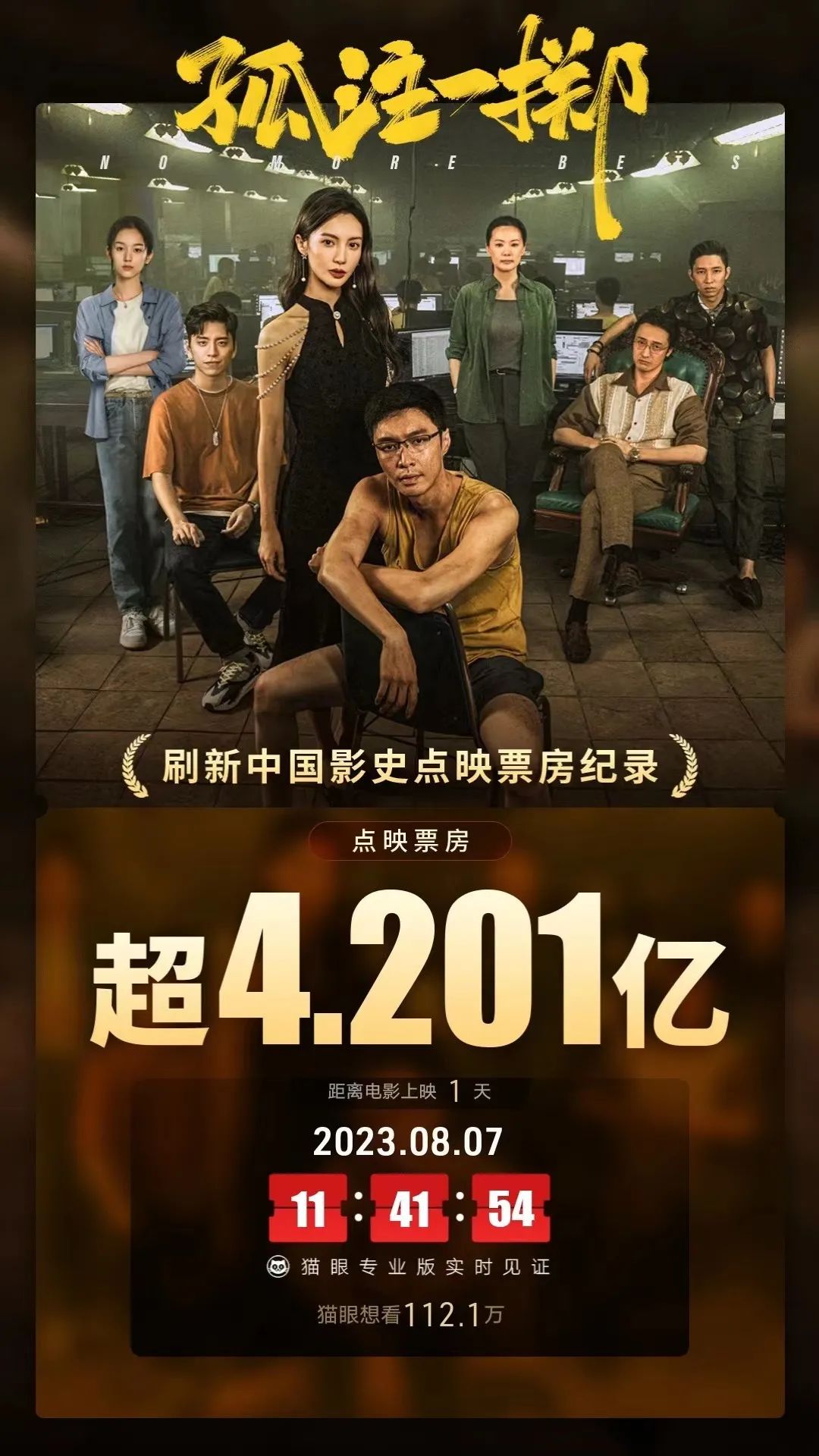 8月7日凌晨,才進(jìn)行完兩天點(diǎn)映的《孤注一擲》宣布緊急提檔8月8日公映。