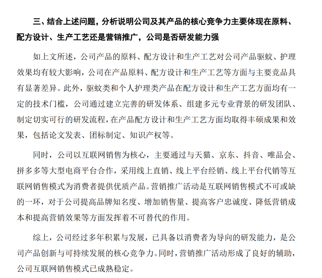 早些時(shí)候,上交所曾針對(duì)潤(rùn)本“捉襟見肘”的研發(fā)能力提出質(zhì)疑,要求潤(rùn)本分析并說(shuō)明“公司及其產(chǎn)品的核心競(jìng)爭(zhēng)力主要體現(xiàn)在原料、配方設(shè)計(jì)、生產(chǎn)工藝還是營(yíng)銷推廣,公司是否研發(fā)能力強(qiáng)?!睂?duì)此,潤(rùn)本只是泛泛回應(yīng)稱:“公司通過(guò)建立完善的研發(fā)體系、組建多元專業(yè)背景的研發(fā)團(tuán)隊(duì)、制定切實(shí)可行的研發(fā)流程,在產(chǎn)品配方設(shè)計(jì)和生產(chǎn)工藝方面均取得豐碩成果和效果,包括論文發(fā)表、團(tuán)標(biāo)制定、知識(shí)產(chǎn)權(quán)等?!?/p>