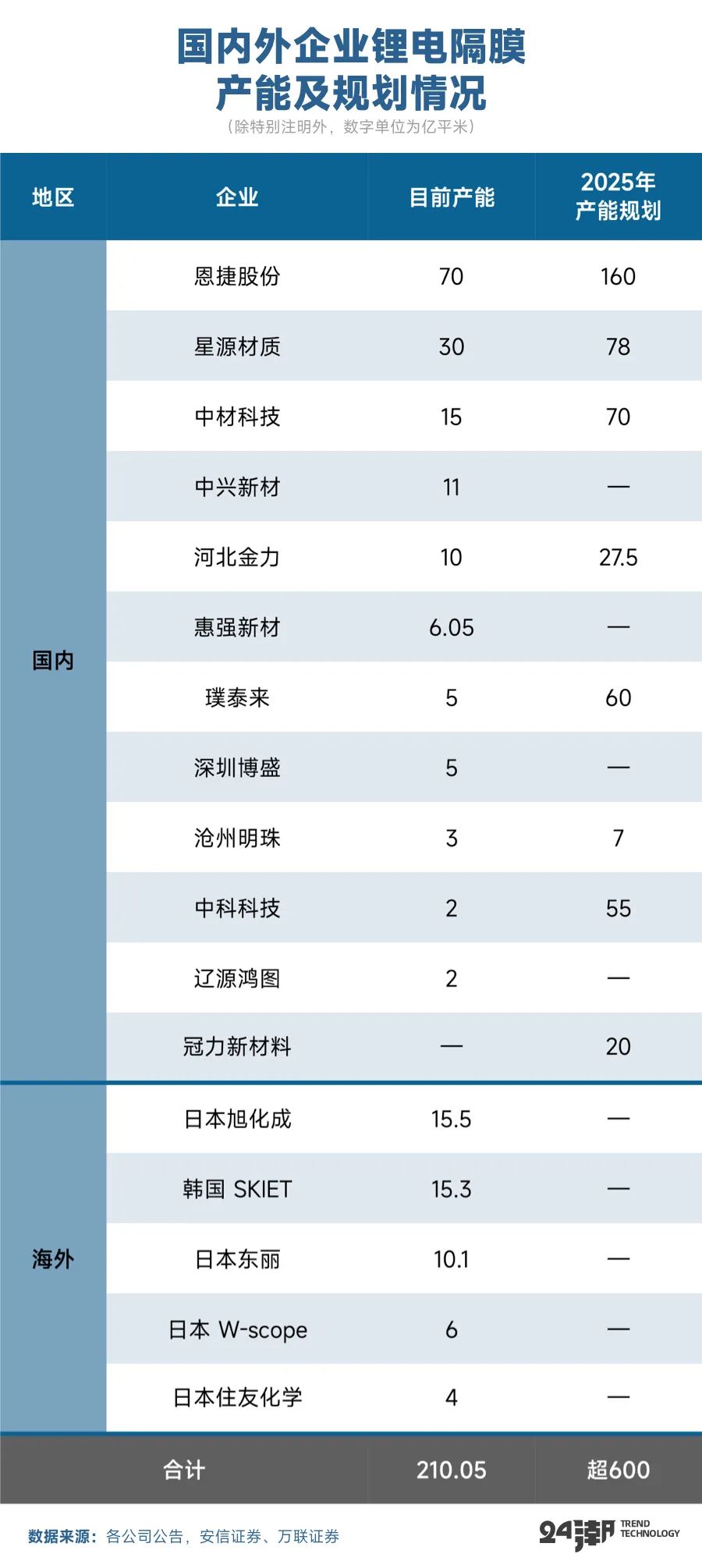 不過需要注意的是,目前國內(nèi)外鋰電隔膜企業(yè)到2025年產(chǎn)能規(guī)劃已突破600億平米,未來市場(chǎng)競(jìng)爭(zhēng)形勢(shì)也不容樂觀。