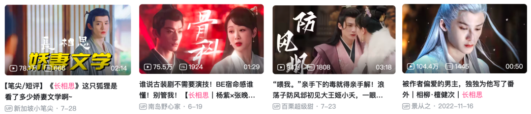 其中最直接的就是對(duì)劇集的宣發(fā)作用。優(yōu)質(zhì)的二創(chuàng)內(nèi)容可以在劇宣前期提升用戶興趣,吸引用戶觀看。在中期與后端則通過各種劇情向二創(chuàng)、CP向二創(chuàng)、解說混剪提升用戶留存,以及延長(zhǎng)劇集的長(zhǎng)尾效應(yīng)。