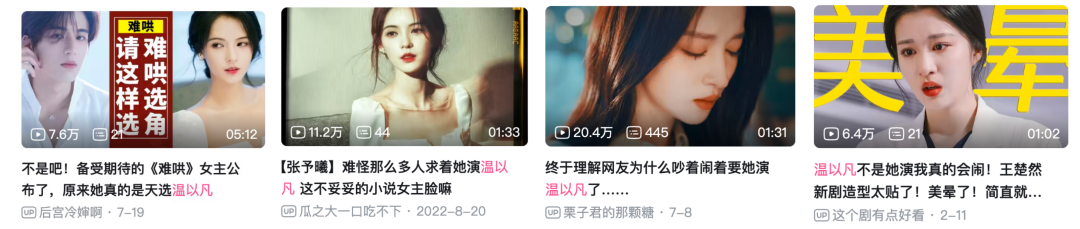 從去年開始,B站上就涌現(xiàn)了大批以王楚然、張予曦為《難哄》女主角溫以凡的二創(chuàng)視頻,此后《難哄》劇方也的確接觸過二人。毒眸此前了解,甚至有些明星團(tuán)隊(duì)會(huì)提前接洽創(chuàng)作者,進(jìn)行對(duì)應(yīng)IP剪輯,以提升選角的成功概率。