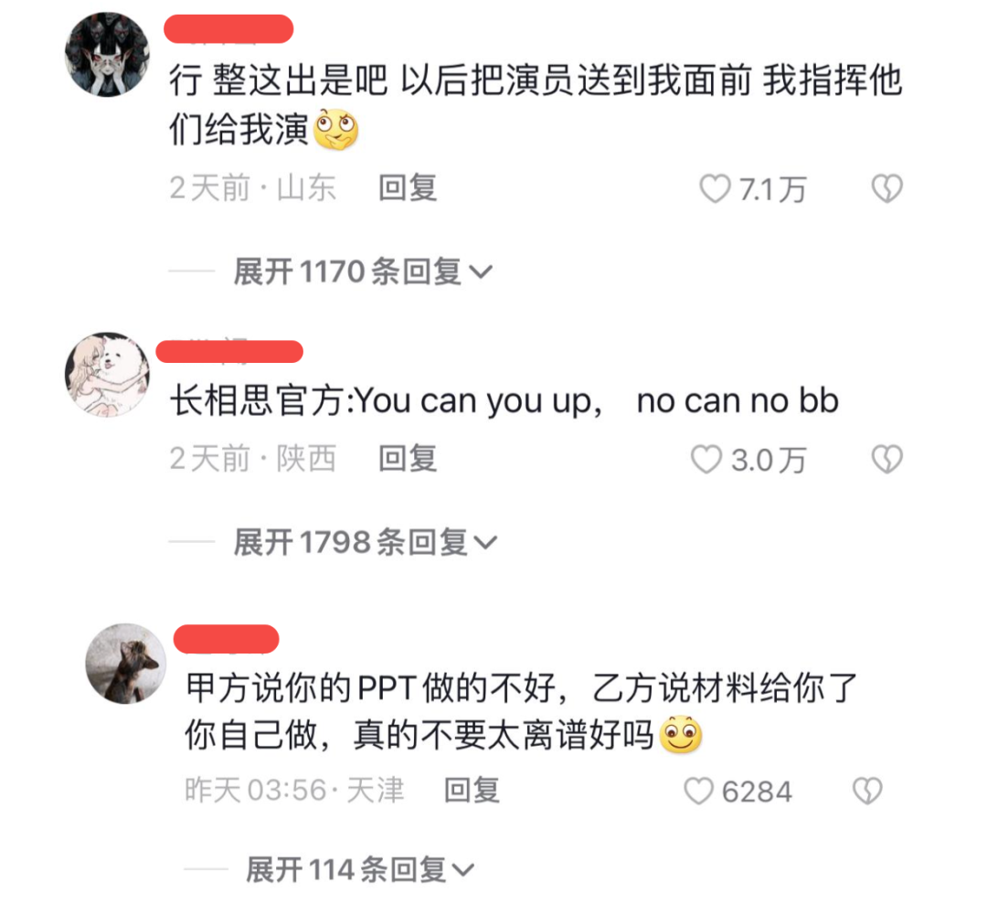 與此同時(shí),有些分界線的模糊,也會(huì)讓人不知所措,比如這次,《長(zhǎng)相思》片方將源文件全部放出,讓用戶自行剪輯。這種行為或許有可以理解的出發(fā)點(diǎn),但也很難熄滅用戶端產(chǎn)生“偏離軌道”、甚至“擺爛”的質(zhì)疑。