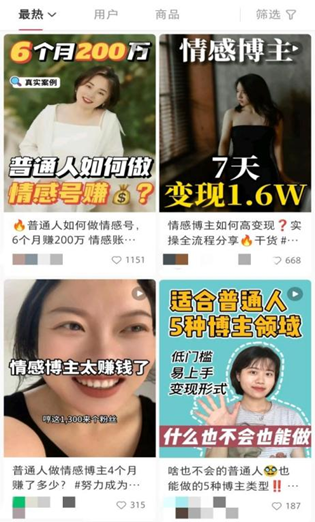 熱門的“普通人做情感博主”經(jīng)驗(yàn)分享貼(圖源:小紅書)