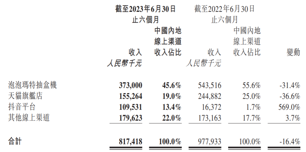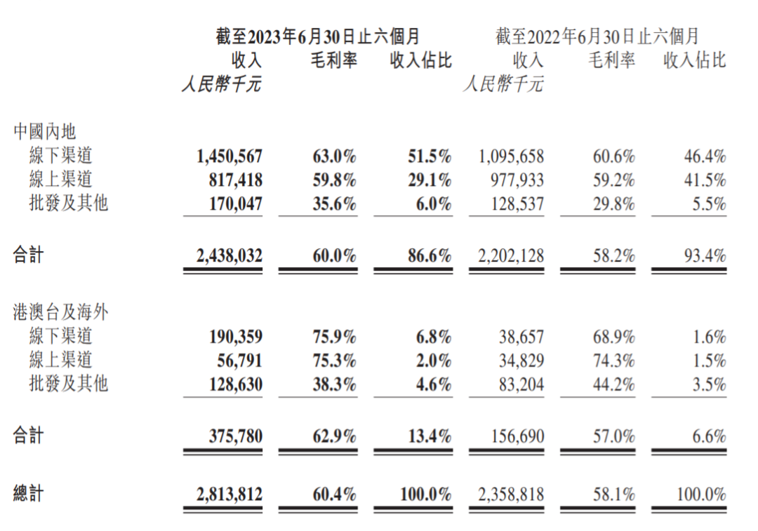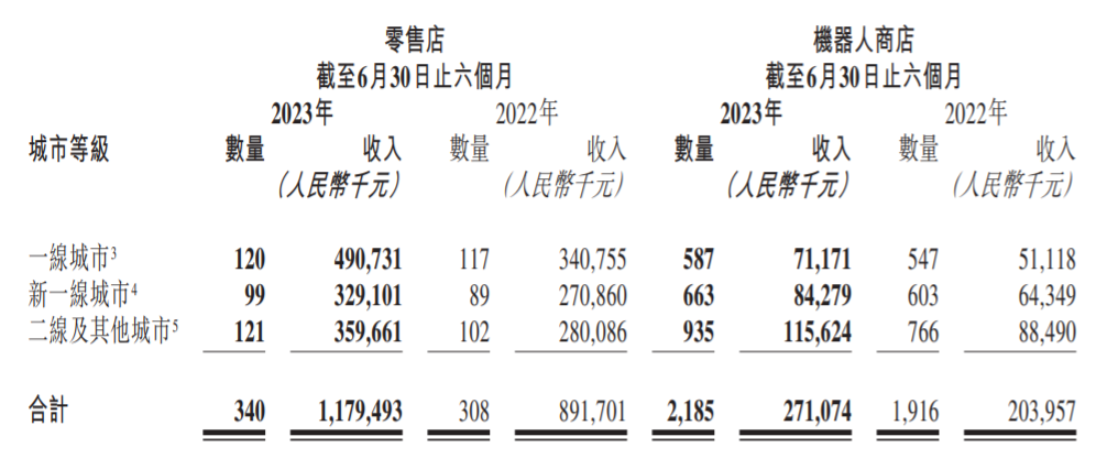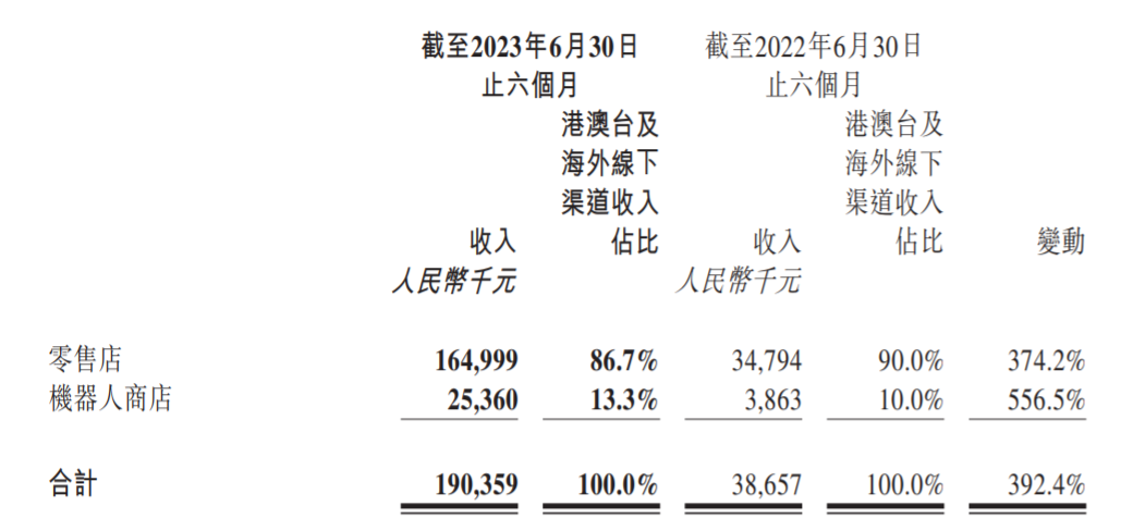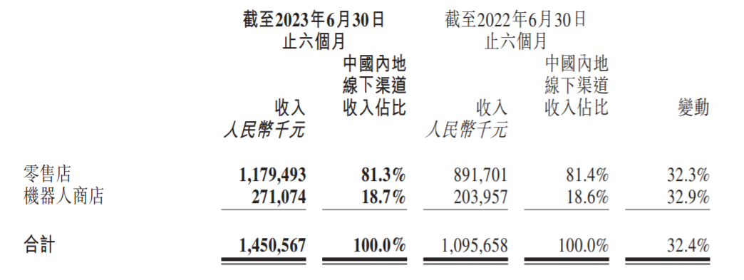 其中,中國內(nèi)地(大陸)市場上半年合計收入24.38億元。線下渠道收入14.51億元,同比增長32.4%,這主要是受益于零售店和機器人商店的門店數(shù)量以及收入的增加,以及疫情結(jié)束后上半年的經(jīng)濟恢復帶動了線下業(yè)務復蘇,同時店鋪裝修形象、位置進行了改善和調(diào)整。