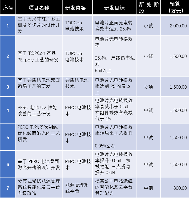 鴻禧能源主要7個(gè)在研項(xiàng)目,其中包括2項(xiàng)TOPCon,1項(xiàng)HJT。